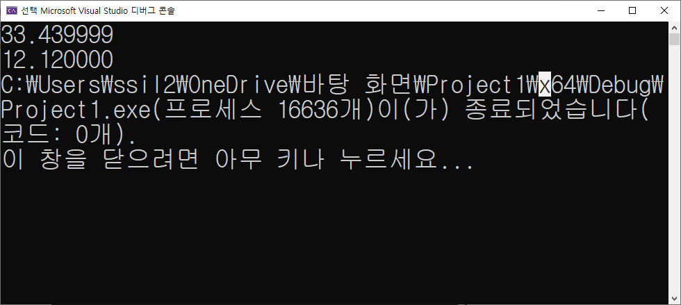 double 형 변수 b에는 12.12 를 저장했는데 실제로 출력은 12.120000이 된 것을 확인할 수 있습니다.