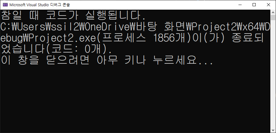화면에 "참일 때 코드가 실행됩니다." 가 출력이 되는 것을 확인할 수 있습니다.