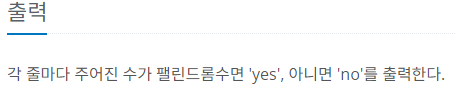 반복을 하는데 만약 입력받은 문자열이 팰린드롬수면 yes를 출력하고 아니라면 no를 출력합니다.