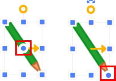 무게중심을 옮기는 이유는 추후에 연필 오브젝트가 마우스를 따라다니게 할 것인데 무게중심이 연필 중앙에 있으면 마우스 포인터에 연필 중앙이 따라다니기 때문에 그림을 그리는 역할로 쓰기에는 조금 어색하기 때문에 무게 중심을 연필 끝으로 옮겨 주는 것입니다.