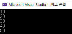 int 형 배열 numbers 에 10, 20, 30, 40, 50 을 저장하고 차례대로 출력하는 예제입니다.