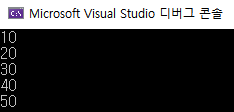 int 형 배열 numbers 에는 10, 20, 30, 40, 50 을 저장합니다.