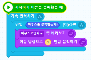 마우스를 클릭하면 엔트리봇이 마우스 포인터의 방향을 보도록하고