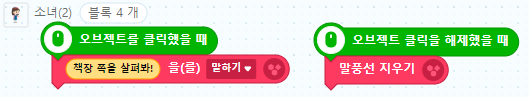 소녀(4) 는 오브젝트를 클릭했을 때 다음 모양으로 바꿉니다.