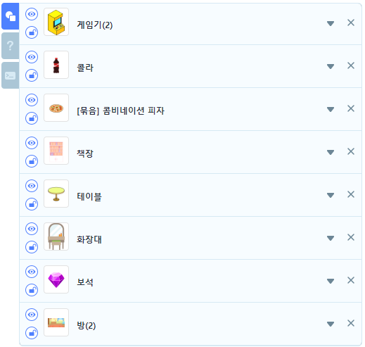 보석 오브젝트가 화장대 오브젝트 아래 쪽에 순서가 되어야 책장 뒤에 숨길 수 있습니다.