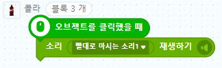 오브젝트를 클릭했을 때 빨대로 마시는 소리1을 재생합니다