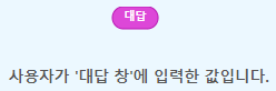 사용자가 입력한 값이 저장되어 있는 대답 코드 블록에 대해서 알아보겠습니다.