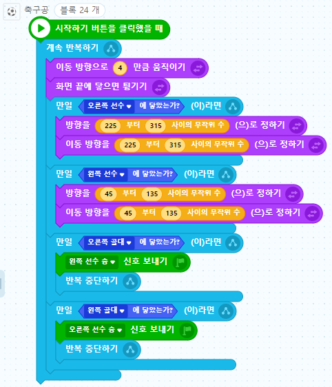 축구공 오브젝트의 코드는 위의 그림과 같습니다.