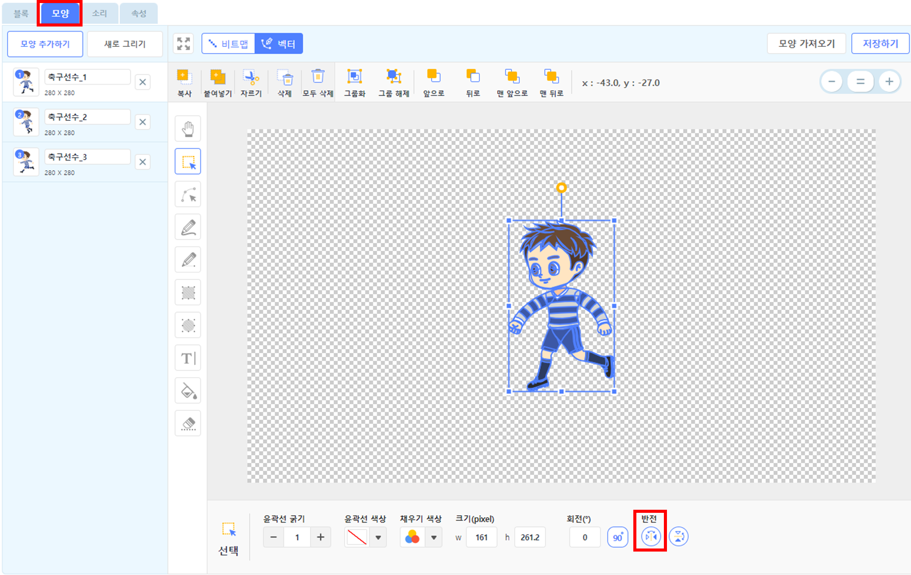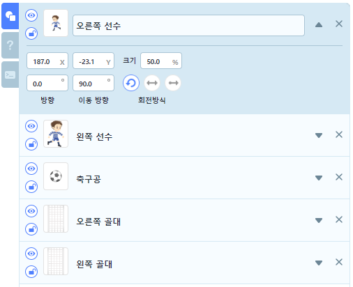 선수 모양과 골대를 뒤집는 건 아래와 같이 진행해줍니다.