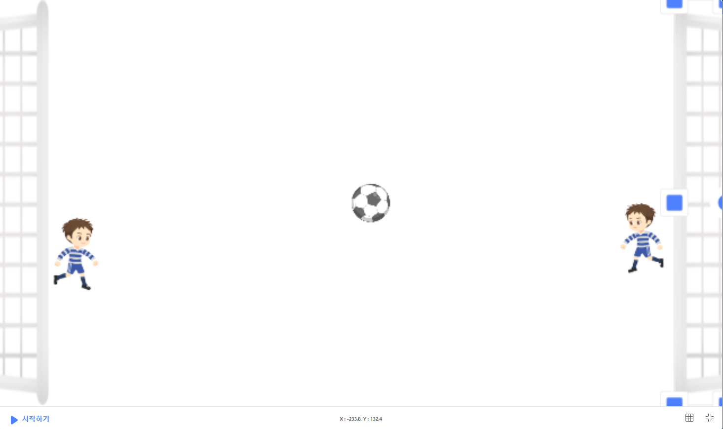 축구 선수 2명, 축구공 하나, 오른쪽 골대 2개를 추가해줍니다.