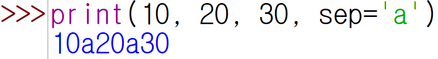 위의 코드들처럼 여러 개의 요소를 화면에 출력하면 파이썬에서 자동으로 공백을 출력해줍니다.