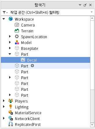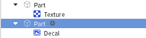 + 버튼을 클릭한 후 데칼 버튼을 누르면 파트에 데칼을 추가할 수 있습니다.
