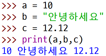 파이썬을 이용해서 위의 코드를 실행해보니 변수에 값이 잘 저장된 후 출력이 되는 것을 확인할 수 있습니다.