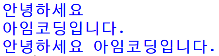 따라서 every 변수에는 "안녕하세요 아임코딩입니다." 전체 문자열이 저장된 후 출력됩니다.