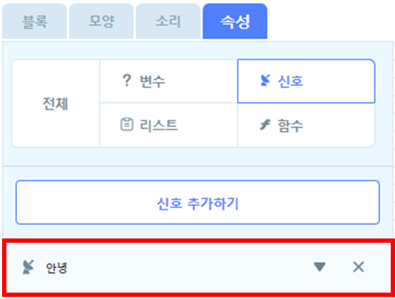 "안녕"이라는 이름을 가진 신호를 추가해보겠습니다.
