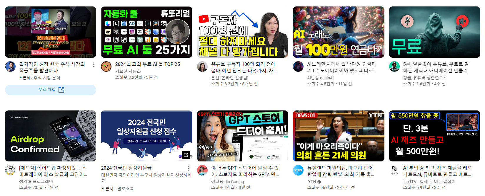 유튜브는 사용자 별로 선호하는 영상을 알고리즘을 통해 선별한 후 사용자에게 추천해줍니다.