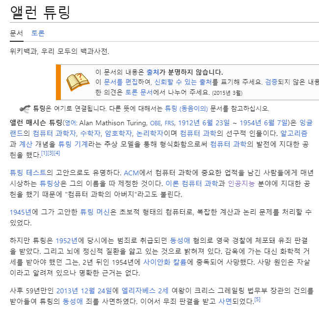 앨런 튜링에 대한 자세한 내용은 위키 백과를 찾아보시면 자세하게 설명이 되어있습니다.